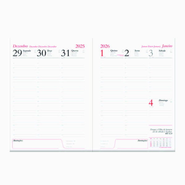 Agenda Executiva c/ Fecho de Imã + Suporte p/ Caneta – Capa: Couro Sintético 0,6mm – Miolo de Agenda Diária – 2×2 Cores – 344 páginas – Off-set 63g com Mapa 4×4 Cores – Índice Telefônico – Planejamento. NÃO ACOMPANHA A CANETA!